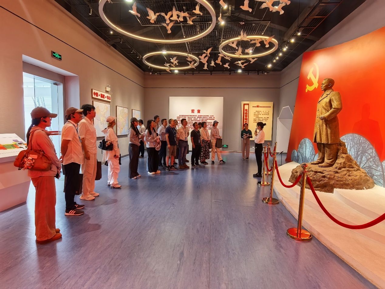 7月3日上午,学习活动进入文化深耕阶段。在关帝文化产业园,师生从“忠义仁勇”三公文化中感悟两岸同源血脉,深刻感受习近平总书记的殷殷嘱托“中国式现代化离不开优秀传统文化的继承和弘扬” “老祖宗传下来的优秀传统文化,我们要继续攥在手里,与时俱进,让它发扬光大”“文化遗产是老祖宗留下来的宝贵财富,要保护好、传承好”;于谷文昌铜陵事迹馆中,透过泛黄的《治沙笔记》、斑驳的造林工具等百余件实物,重温“不治服风沙,就让风沙把我埋掉”的铮铮誓言。馆内“政声人去后,丰碑在人间”的结语,引发师生对“为人民服务”公仆价值的深刻思考。